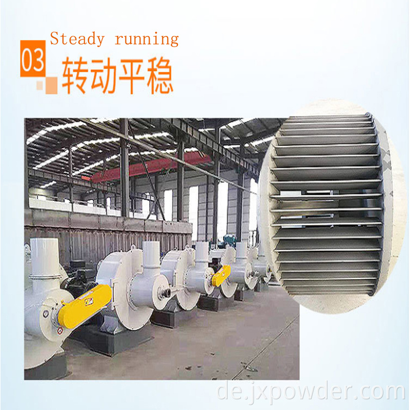 Die Maschine ist eine vertikale Achse -Reflexionstyp -Mühle, die zwei Verarbeitungsprozesse von Mikroquetschungen und Partikelsortierung gleichzeitig absolvieren kann. Die Mühle besteht aus einer sich bewegenden Scheibe und einem Zahnradring. Durch die Hochgeschwindigkeitsrotation einer besonderen Form der sich bewegenden Scheibe wird sie viele Male gepresst, kollidiert und geschnitten, um zu zerkleinern. Das Material erhält einen Aufprall und die Schere zwischen dem Hochgeschwindigkeitsrotor und dem Stator der Zahnfutter. Das zerkleinerte Material tritt in den vom Luftstrom angetriebenen Bewertungsbereich ein. Das qualifizierte Material wird vom Zyklon- und Staubsammler gesammelt, und das nicht qualifizierte Material wird zum Zerkleinern in den Quetschbereich zurückgegeben.